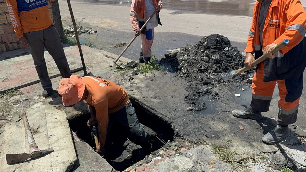 Prefeitura de Manaus intensifica ações de limpeza de caixas coletoras no bairro Jorge Teixeira para evitar alagamentos